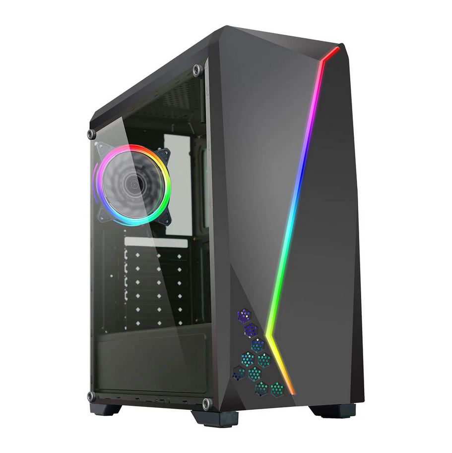 - RGB Themed PC Gaming Case, Side Window and 4 LED Fans(Comes in 6 +£20, and 8 fan +£30 variants)